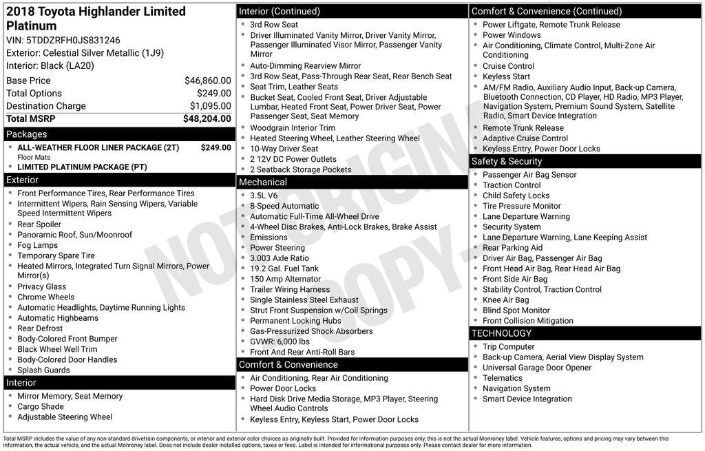 - Vehicle Name: Toyota Highlander