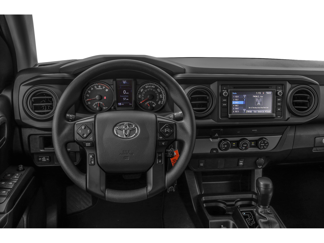 This Tacoma's impressive features don't stop there. Enjoy the convenience of the Entune Plus entertainment system with AM/FM, CD, and HD Radio, along with the added security of the backup camera and auto high-beam headlights. The spacious interior offers ample room for passengers and cargo, with a split-folding rear seat and power sliding rear window for added versatility.