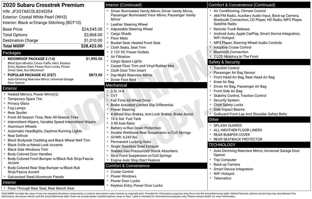 - Vehicle Name: Subaru Crosstrek