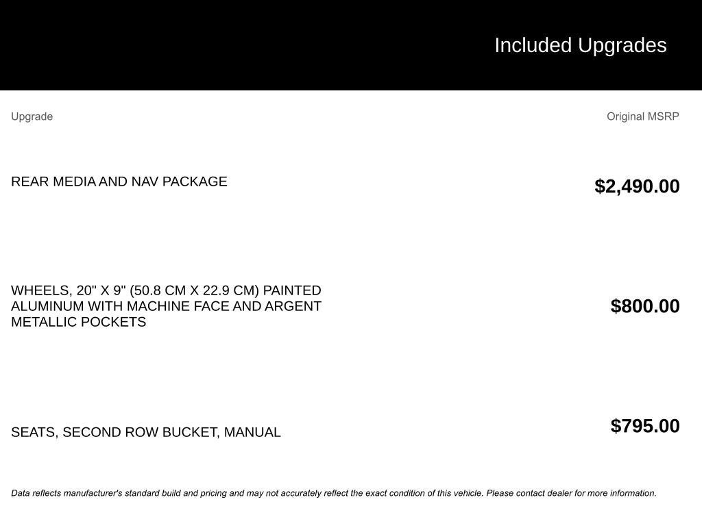 - Third-row seatback upholstery: Carpet third-row seatback upholstery