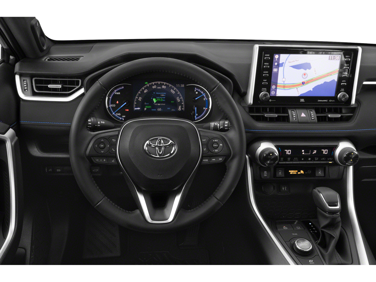Equipped with the latest Toyota Safety Sense technologies, this RAV4 Hybrid offers unparalleled peace of mind. Features like Pre-Collision System with Pedestrian Detection, Full-Speed Range Dynamic Radar Cruise Control, Lane Departure Alert with Steering Assist, and Automatic High Beams provide an exceptional level of active safety.