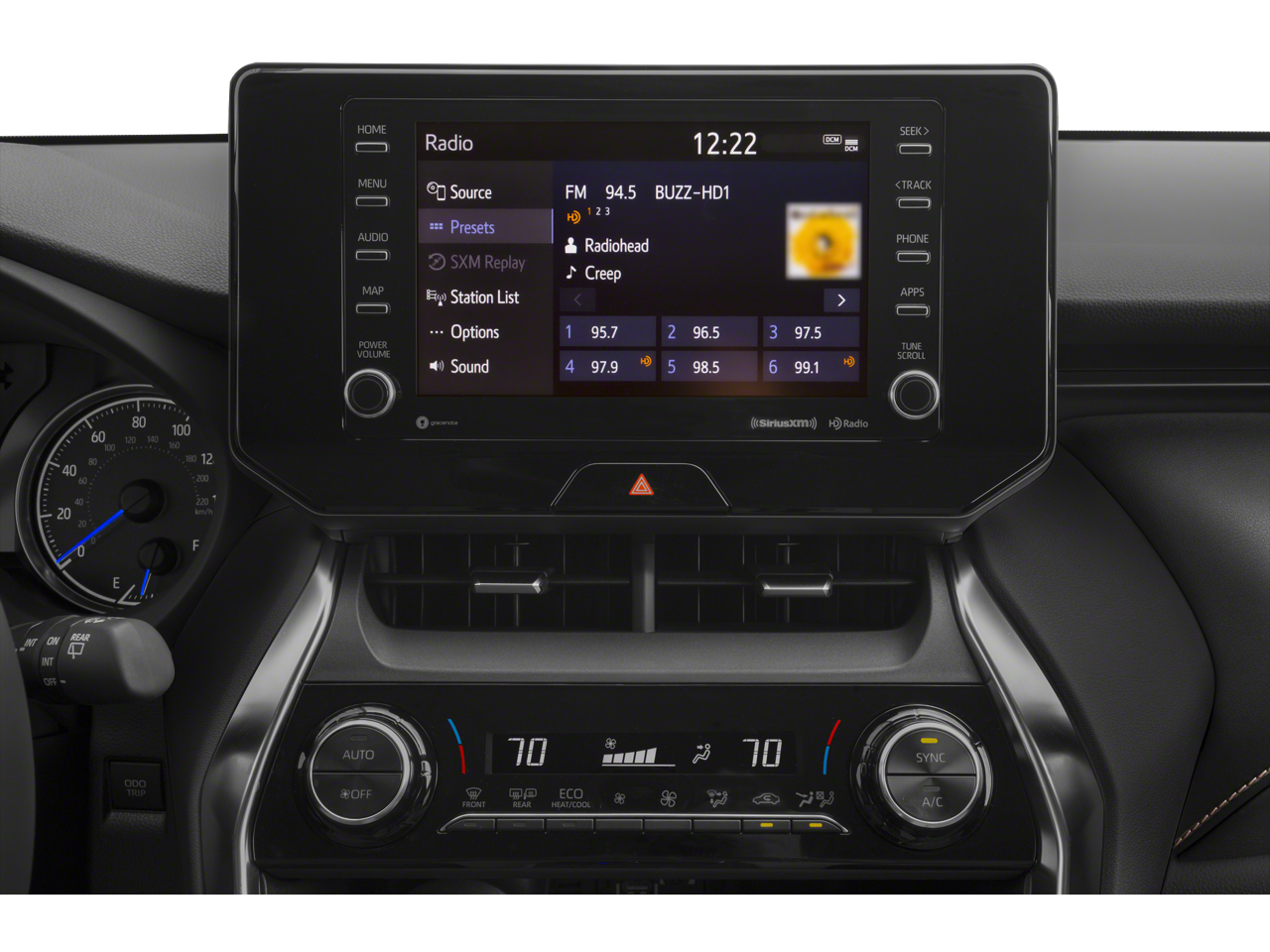 - Radio: Audio Plus -inc: 8" touchscreen, AM/FM/HD Radio, 6 speakers, 1USB and 1 AUX media port, 3 additional USB charge ports, advanced voice recognition, hands-free phone capability and music streaming via Bluetooth® wireless technology, Android Auto, Apple CarPlay and Amazon Alexa compatible, SiriusXM w/3-month All Access trial, Connected Services - Safety Connect w/1-year trial, Service Connect w/10-year trial, Remote Connect w/1-year trial, Wi-Fi Connect w/up to 2 GB within 3-month trial, See toyota.com/audio-multimedia and toyota.com/connected-services for details