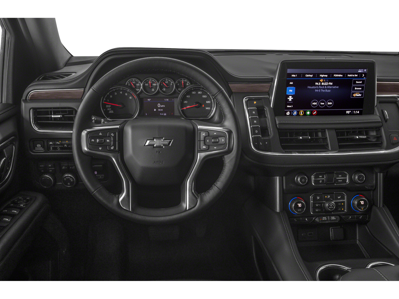 Exterior-wise, this Tahoe Z71 commands attention with its bold, black exterior and distinctive Z71 styling cues. The 20-inch machined aluminum wheels and body-color bumpers exude a refined and rugged aesthetic, perfectly complementing the vehicle's impressive capabilities.