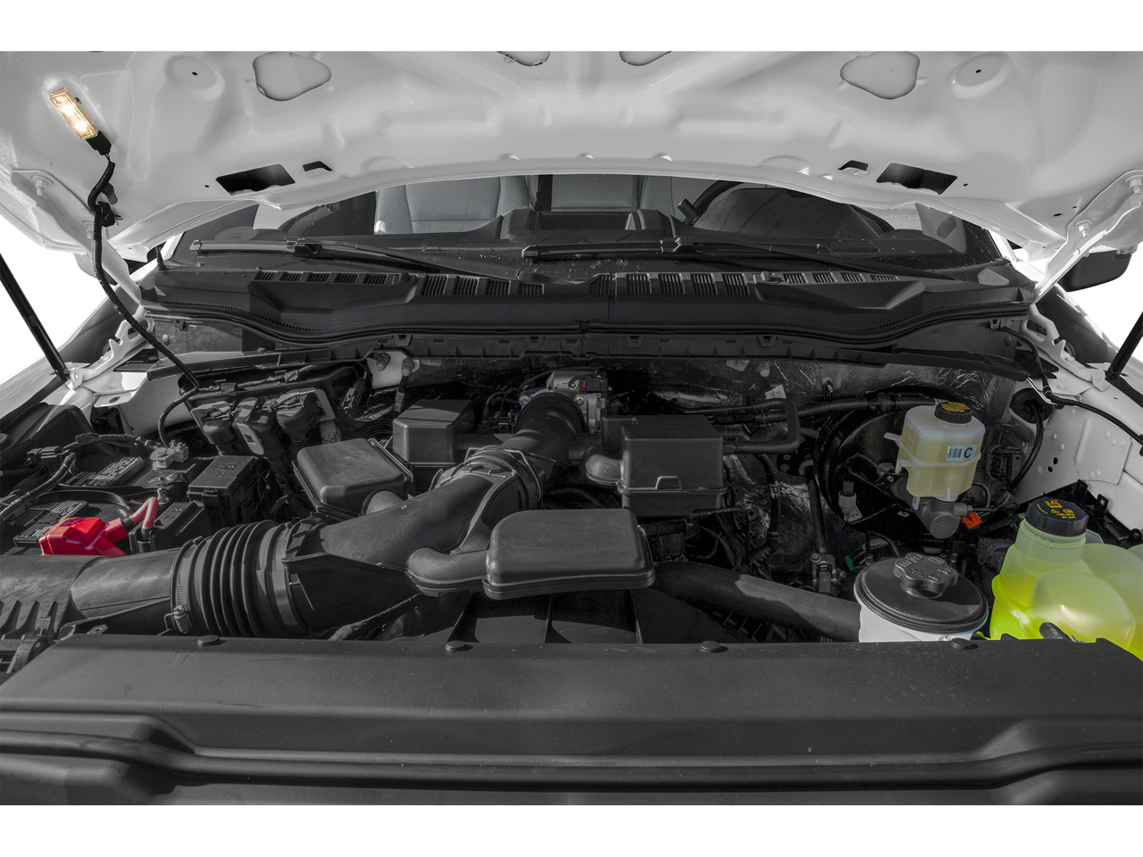 Exterior highlights include the striking White paint, bold Black Appearance Package, and the rugged Tough Bed spray-in bedliner. The PowerScope trailer tow mirrors with memory and the LED box lighting ensure you have excellent visibility and control, whether hauling a heavy trailer or navigating tight spaces.