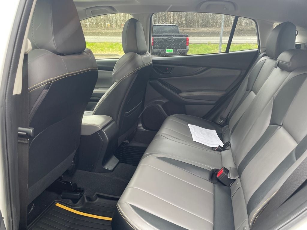The interior of this Crosstrek Sport is equally impressive, featuring heated front bucket seats, a leather-wrapped steering wheel, and the versatile StarTex upholstery that's both durable and comfortable. The available Moonroof Package adds an extra touch of sophistication, while the Auto-Dimming Exterior Mirrors and HomeLink system provide added convenience and safety.