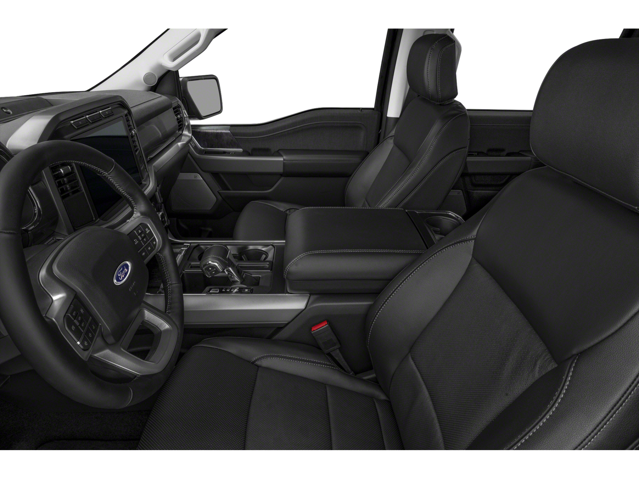 Step inside this Lariat trim and be enveloped in the luxurious leather-trimmed bucket seats, which offer both heating and ventilation for your ultimate comfort. The Wireless Charging Pad and Interior Work Surface add convenience and functionality to your daily drives, while the Partitioned Lockable Fold-Flat Storage ensures your belongings are secure and organized.