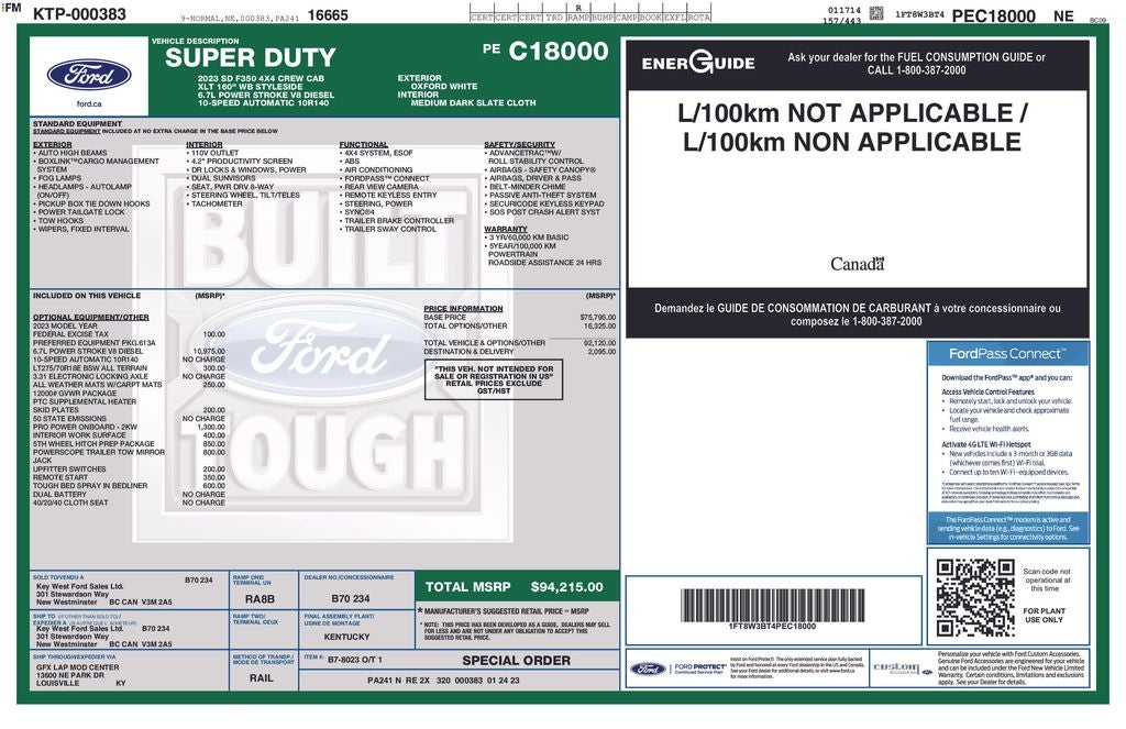 - Vehicle Name: Ford Super Duty F-350 SRW