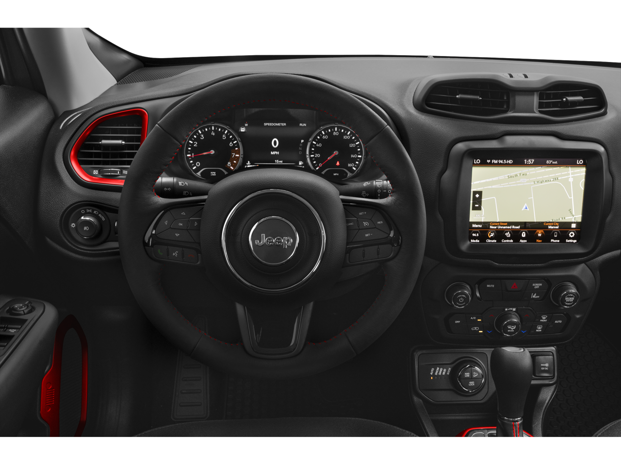 The Renegade Trailhawk is designed to tackle any adventure, with a rugged, off-road-ready suspension, skid plates, and all-terrain tires. Inside, you'll find premium amenities like the Uconnect 4C Nav system with an 8.4-inch touchscreen display, Apple CarPlay/Android Auto, and a premium audio system.
