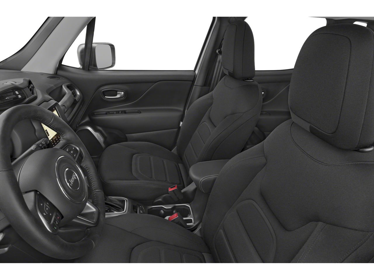 Inside, the Renegade Latitude offers a premium cloth interior with comfortable low-back bucket seats, a convenient front center armrest, and a 7-inch color display with the latest Uconnect 4C Nav technology, including Apple CarPlay and Android Auto integration. The Renegade also comes equipped with a host of advanced safety features, including Blind Spot Monitoring, Rear Cross-Path Detection, and the ParkView Rear Back-Up Camera, giving you peace of mind on the road.