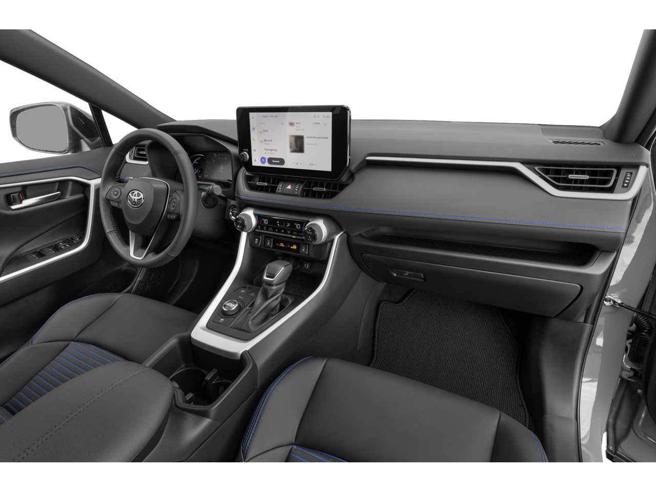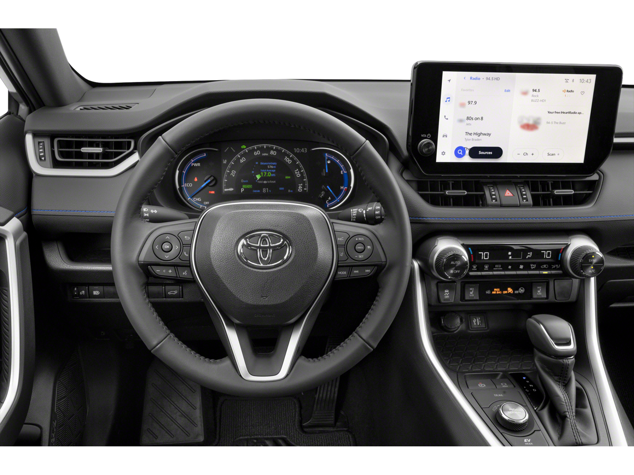 This 2023 Toyota RAV4 Hybrid comes equipped with, 2.5L 4-Cylinder, 4-Wheel Disc Brakes, 6 Speakers, ABS brakes, Air Conditioning, Alloy wheels, AM/FM radio: SiriusXM, Auto High-beam Headlights, Auto-dimming Rear-View mirror, Automatic temperature control, Axle Ratio: TBD, Brake assist, Bumpers: body-color, Delay-off headlights, Driver door bin, Driver vanity mirror, Dual front impact airbags, Dual front side impact airbags, Electronic Stability Control, Emergency communication system: Safety Connect (1-year trial), Four wheel independent suspension, Front anti-roll bar, Front Bucket Seats, Front Center Armrest, Front dual zone A/C, Front reading lights, Fully automatic headlights, Garage door transmitter: HomeLink, Heated door mirrors, Heated Front Seats, Heated front seats, Illuminated entry, Knee airbag, Lane Departure Warning System, Leather Shift Knob, Low tire pressure warning, Occupant sensing airbag, Outside temperature display, Overhead airbag, Overhead console, Panic alarm, Passenger door bin, Passenger vanity mirror, Power door mirrors, Power driver seat, Power Liftgate, Power moonroof, Power steering, Power windows, Radio data system, Radio: AM/FM/XM Audio System, Rear anti-roll bar, Rear seat center armrest, Rear window defroster, Rear window wiper, Remote keyless entry, Security system, SofTex Seat Trim, Speed control, Speed-sensing steering, Split folding rear seat, Spoiler, Steering wheel mounted audio controls, Telescoping steering wheel, Tilt steering wheel, Traction control, Trip computer, Turn signal indicator mirrors, Variably intermittent wipers, Wheels: 18 x 7.0J Black-Painted Aluminum Alloy, 2.5L 4-Cylinder. 2023 Toyota RAV4 Hybrid XSE AWD eCVT 2.5L 4-Cylinder