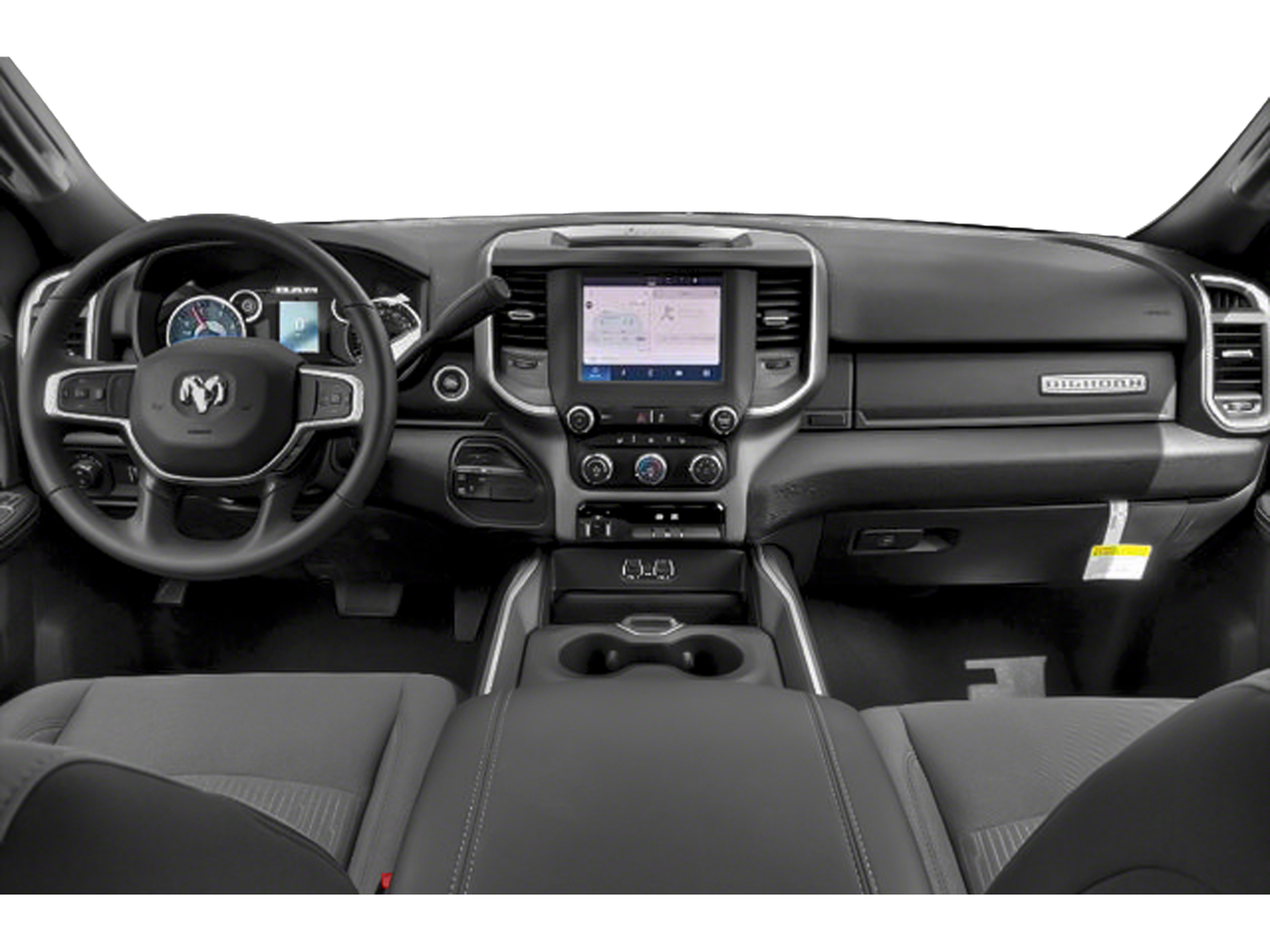 The interior of this Ram 3500 Big Horn is equally impressive, with premium cloth bucket seats, a heated steering wheel, and a host of advanced technology features. The Uconnect 5 infotainment system with a 12-inch touchscreen display keeps you connected and entertained, while the 9-speaker Alpine audio system delivers an immersive listening experience.