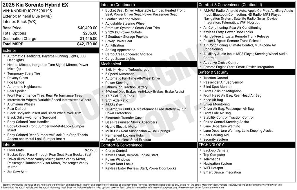 - Vehicle Name: Kia Sorento Hybrid